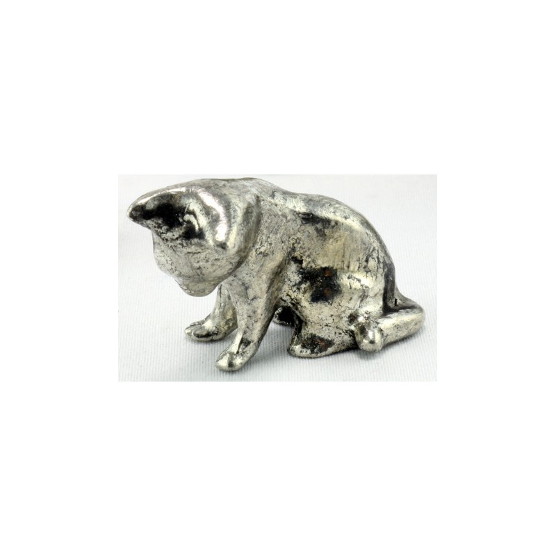 Chat miniature assis en étain de qualité alimentaire, fabriqué en France.