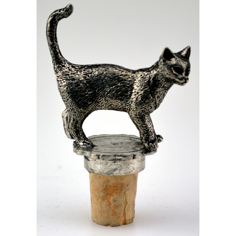 Ce bouchon en étain alimentaire représentant un chat debout est une façon originale et décorative de fermer une bouteille pour bien conserver le vin. Le bouchon conique standard en liège peut être remplacé en cas de besoin.