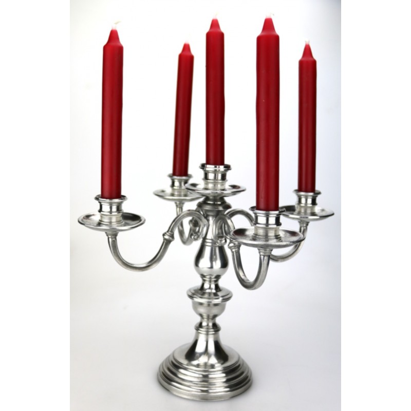 Un chandelier 5 feux en étain de qualité alimentaire.