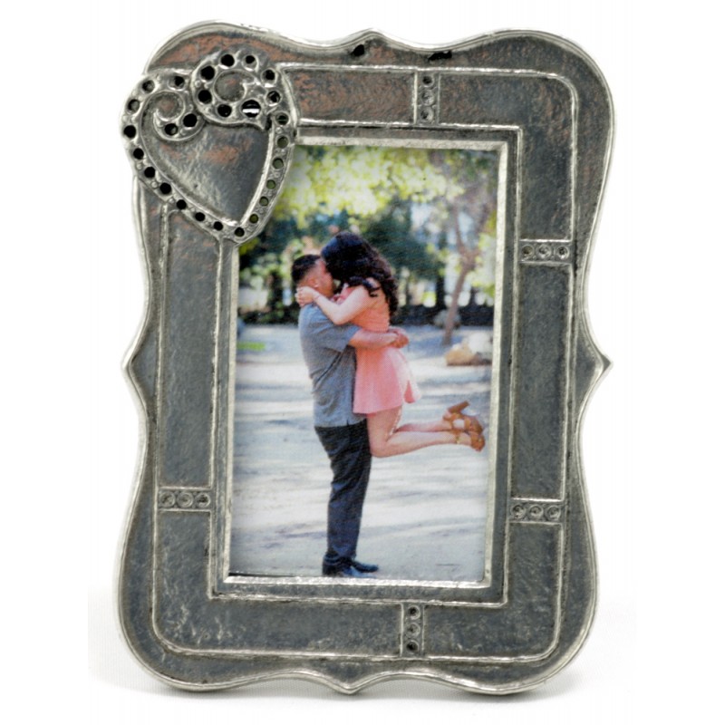 Cadre photo rectangulaire vertical décor Coeur en étain de qualité alimentaire, fabriqué en France. Uniquement en format portrait. Pour photo format 3.5 x 6cm